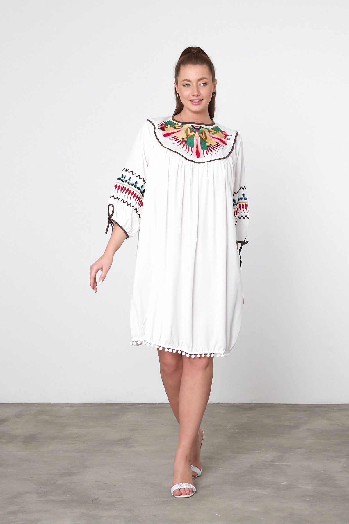 Türkiye'de üretilmiştir. Dokuma. 100% viskon. 30c elde veya makinada yıkayınız. Kuru temizleme yapmayınız. Manken ölçüleri boy: 1.80 cm, göğüs: 94 cm bel: 69 cm kalça: 99 cm Manken üzerindeki ürünümüz 36 bedendir.