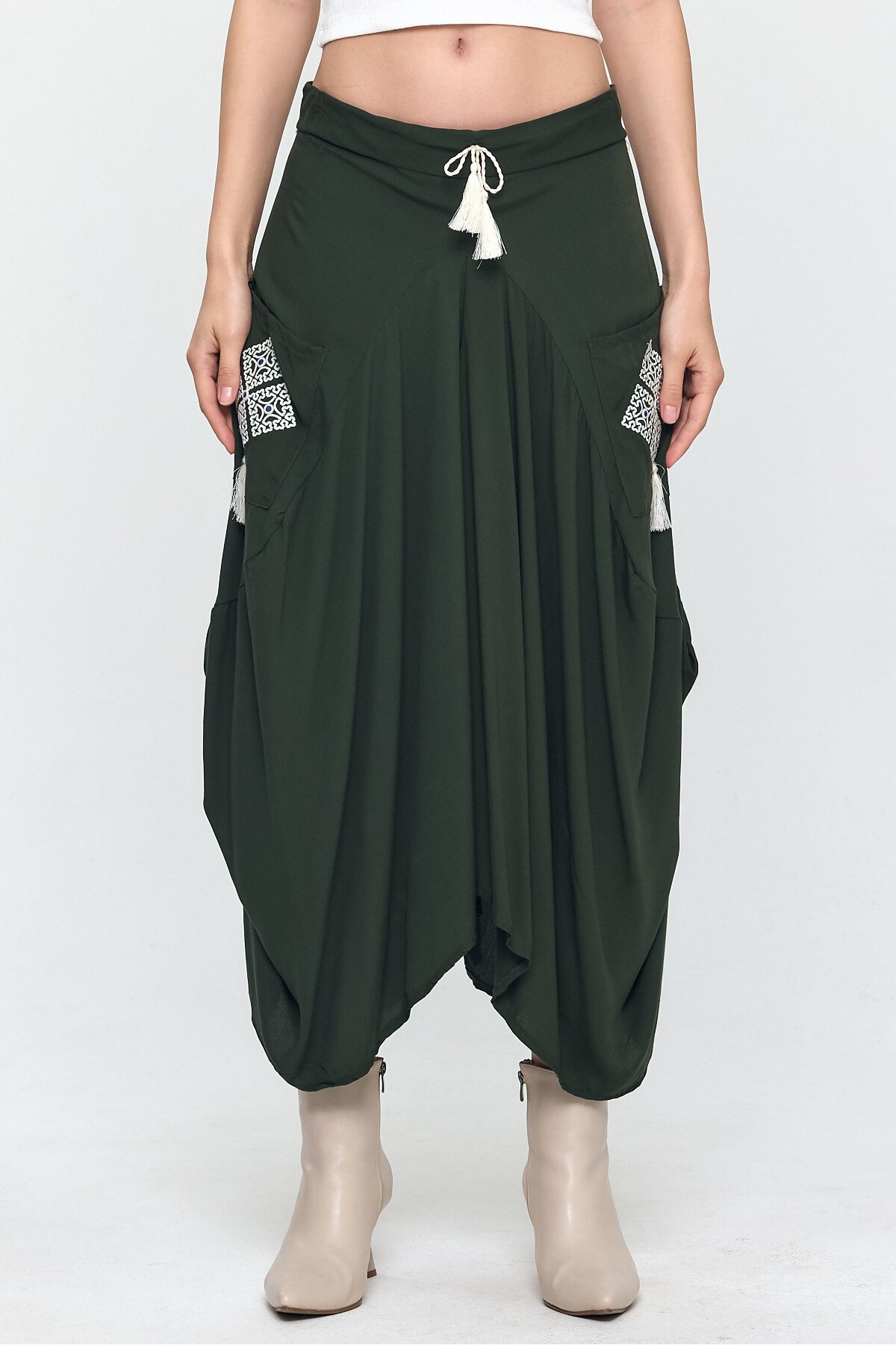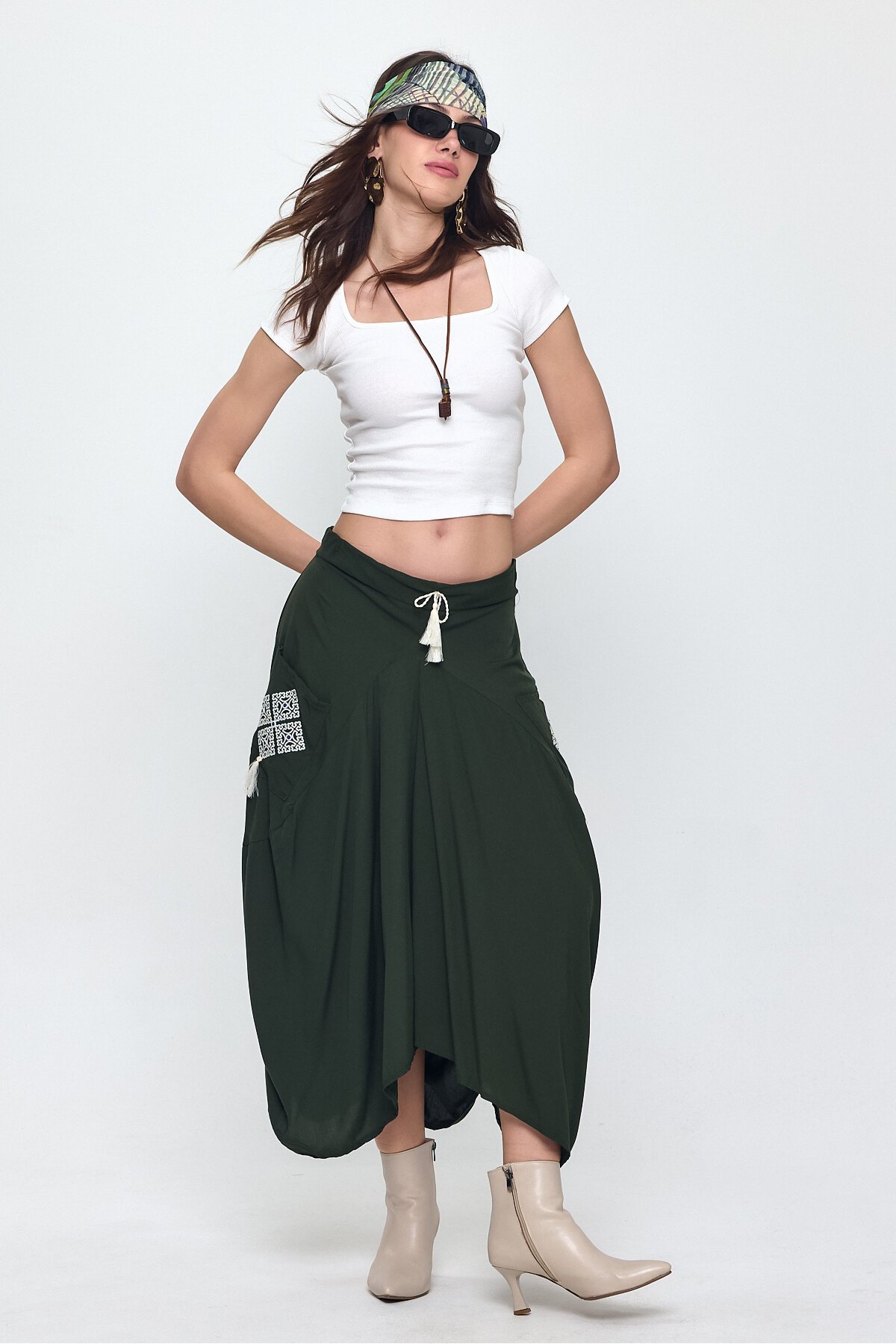 Türkiye'de üretilmiştir. Dokuma. 100% viskon. 30c elde veya makinada yıkayınız. Kuru temizleme yapmayınız. Manken ölçüleri boy: 1.80 cm, göğüs: 94 cm bel: 69 cm kalça: 99 cm Manken üzerindeki ürünümüz 36 bedendir.