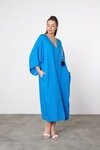 V039 Mavi Kuş Tüyü Nakış Püskül Detaylı Büyük Beden Gömlek Elbise