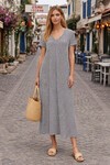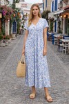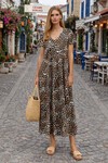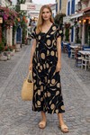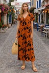V168 V Yaka Desenli Cepli Viskon Elbise