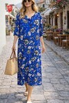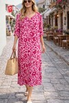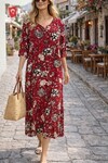 V168 V Yaka Desenli Cepli Viskon Elbise