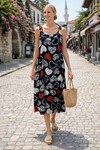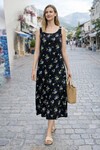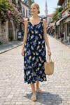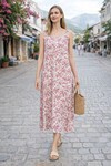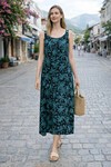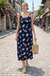 V9 Askılı Desenli Cepli Elbise