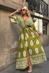 V075 Yeşil Otantik Desen Şalvar Model Elbise