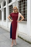 V288 Bordo Şeritli Oysho Elbise